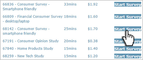 Surveys on many interesting topics. Time estimates shown up front. See at a glance how much you can earn from each survey